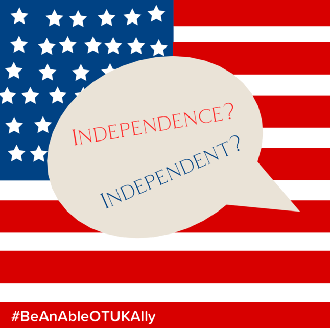 July 4 It’s #Independence day in america. Language is important. #BeAnAbleOTUKAlly this #DisabilityPrideMonth. Reflect on what that word really means, is it a good word to use as a profession? Should the goal alway be independence? Is anyone really independent?