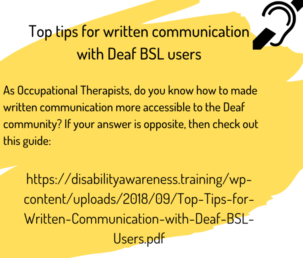 September was International #DeafAwarenessMonth, witch included International Week of Deaf People from 19-25 September and World Deaf Day on 27 September. Throughout the month @SusanGriffiths5 one of AbleOTUK founders shared her lived experiences on our social media platforms. Here is what she created and shared. We would love you to #BeAnAbleOTUKAlly and share your thoughts, and refections. Please comment below or on our social media platforms