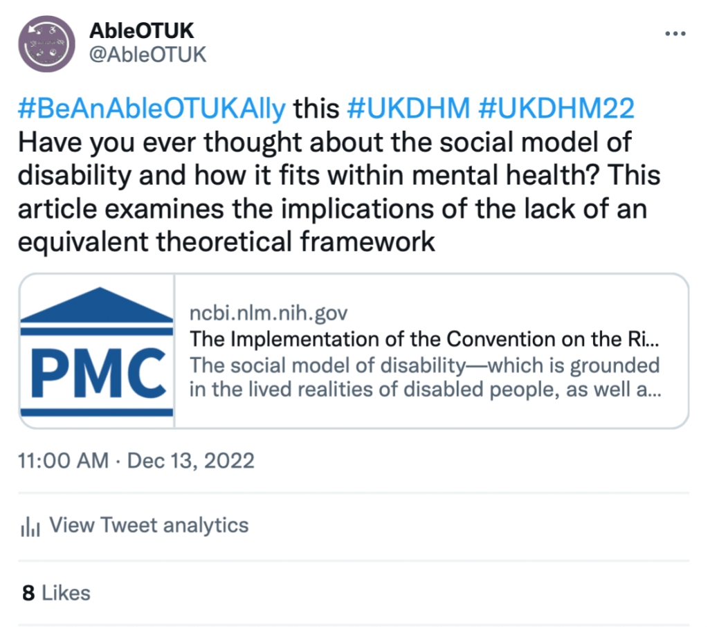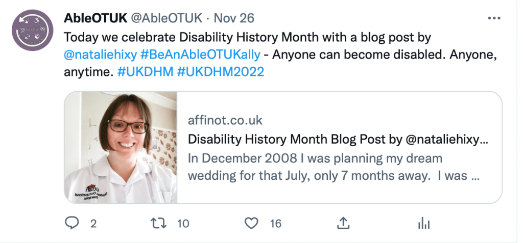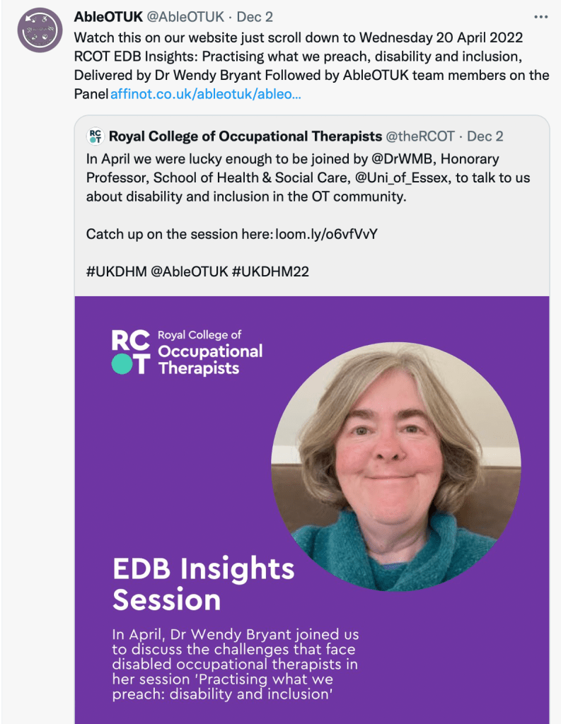 #BeAnAbleOTUKAlly this #UKDHM #UKDHM22 and read our founding members – @GeorgiaVineOT blog post Employment, disability, health and wellbeing