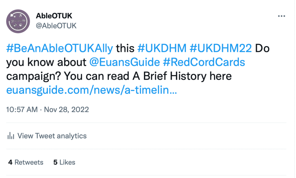 #BeAnAbleOTUKAlly this #UKDHM #UKDHM22 Do you know about @EuansGuide #RedCordCards campaign? You can read A Brief History here
