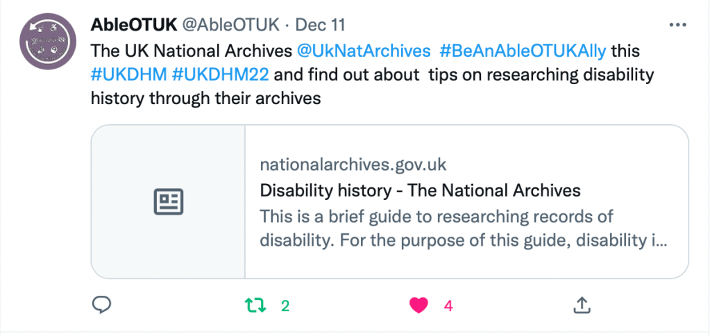 The UK National Archives @UkNatArchives #BeAnAbleOTUKAlly this #UKDHM #UKDHM22 and find out about tips on researching disability history through their archives
