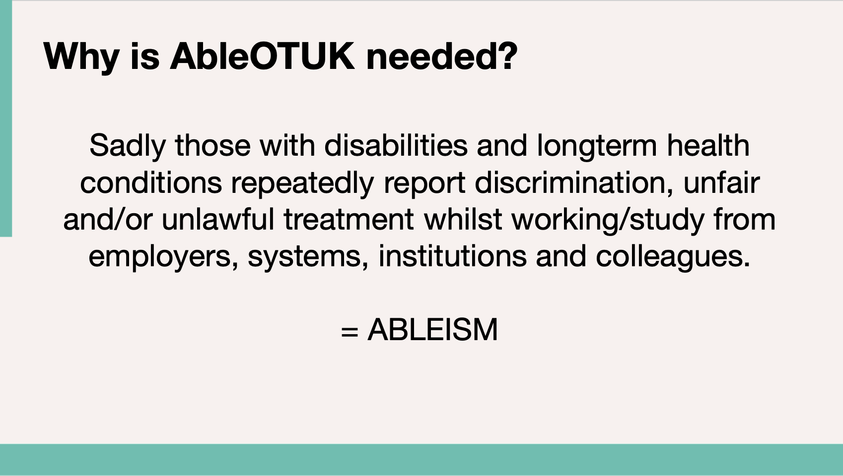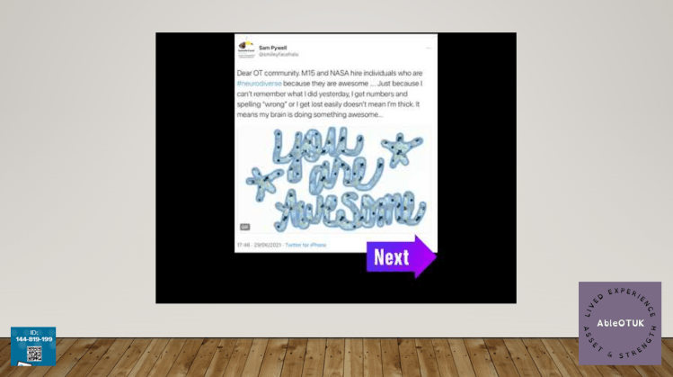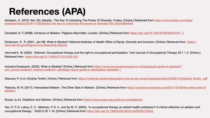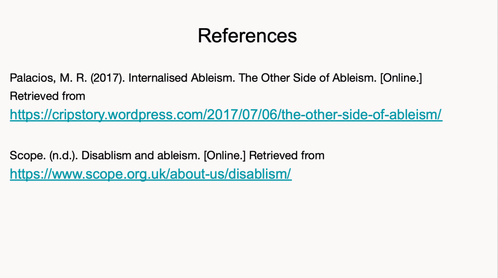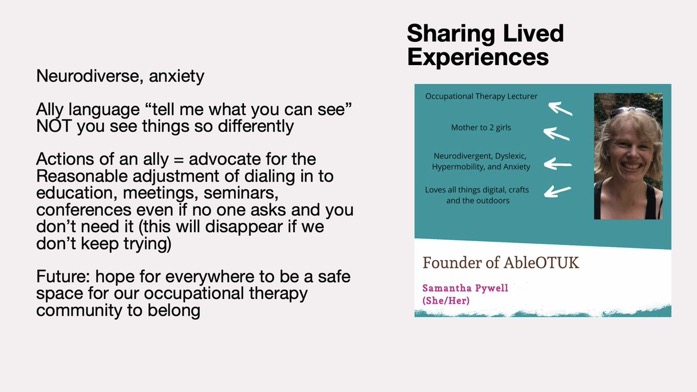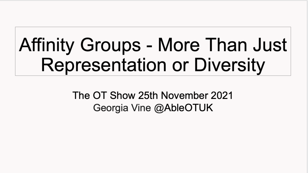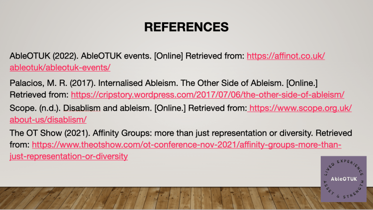 7th October 2022 – Ableism what is it and are occupational therapists guilty of practising it? presentation for Avon and Wiltshire Mental Health partnership NHS as part of their #OTweek CPD event.