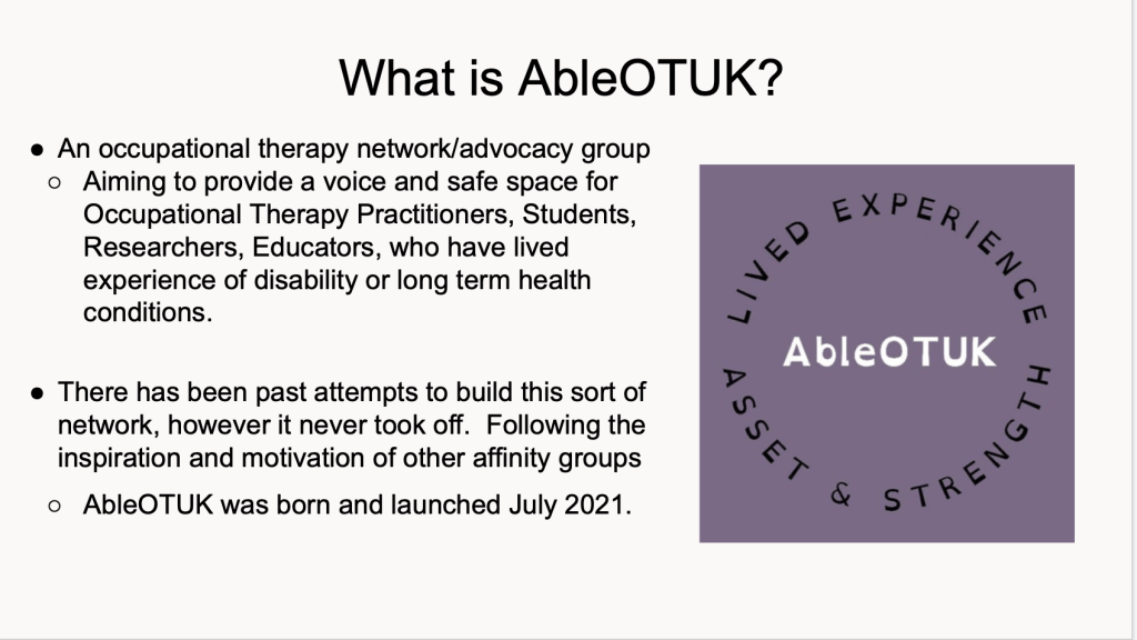 OT Show November 2021 Georgia Vine represented AbleOTUK giving this presentation.