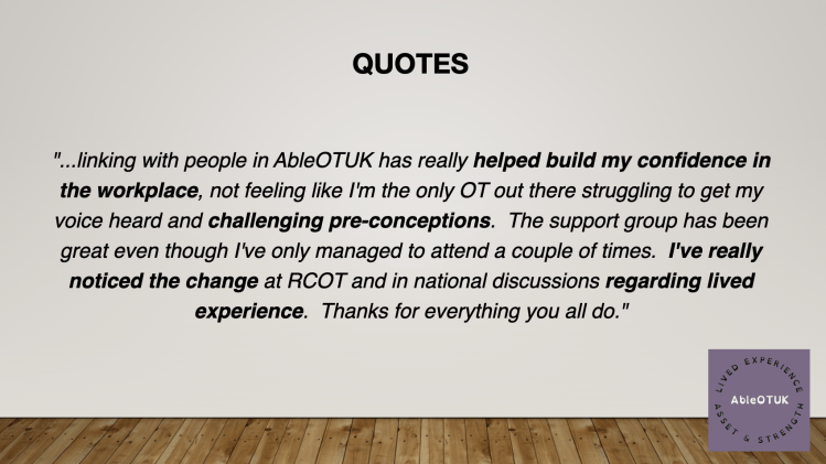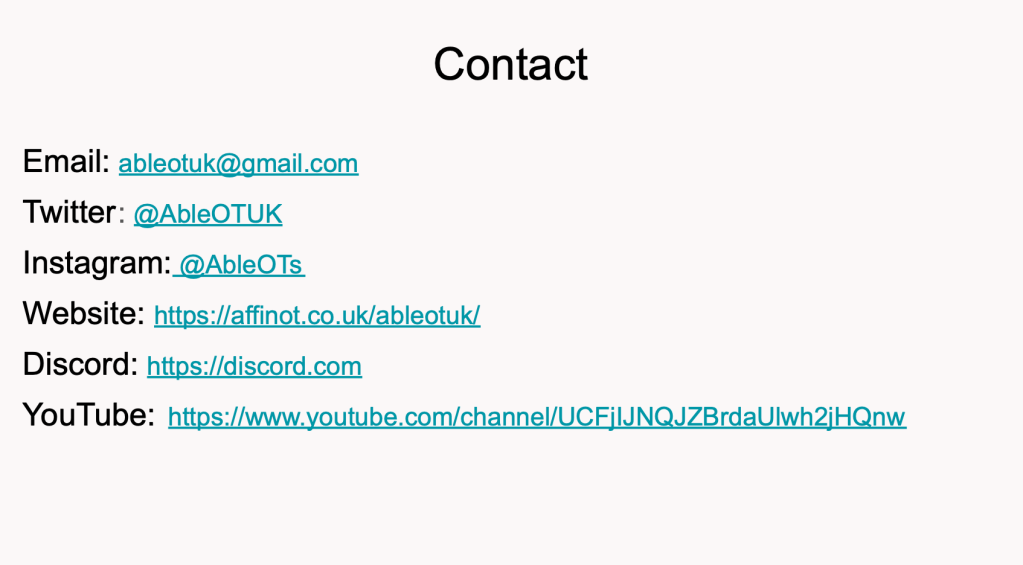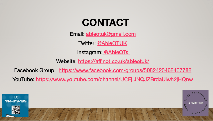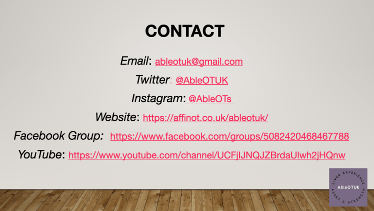 15th June 2022 – AbleOTUK round table RCOT conference 2022 session 29 (if you had a ticket to #RCOT2022 you can watch this round table event on that platform available for 6 months)