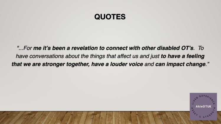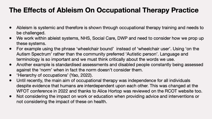 Saturday 23rd April 2022. Occupational Therapy, Ableism, and Coproduction of services. – https://www.otfrontiers.co.uk