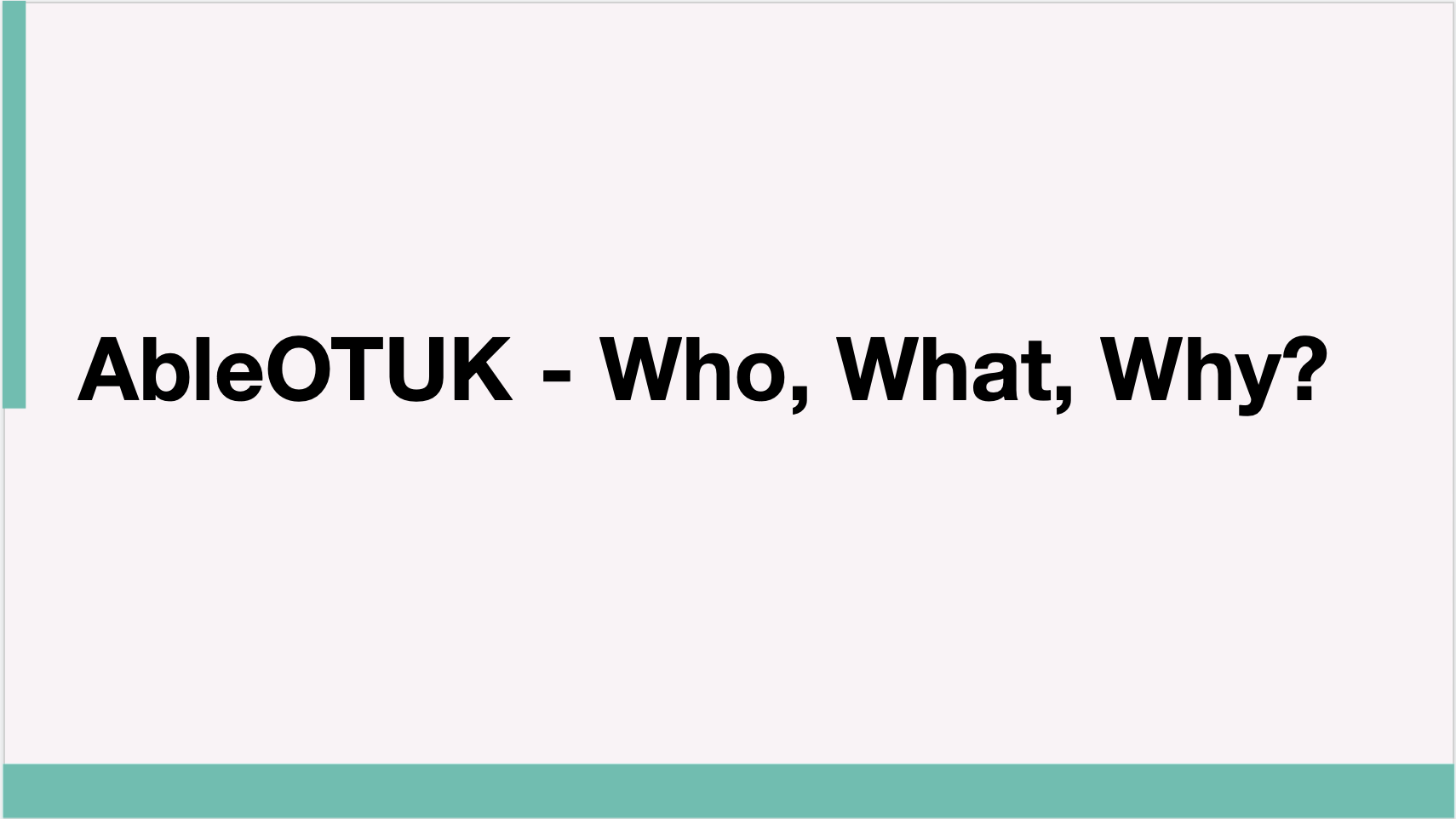 Below are workshops, events, presentations and other activities the core group behind AbleOTUK have been up to: