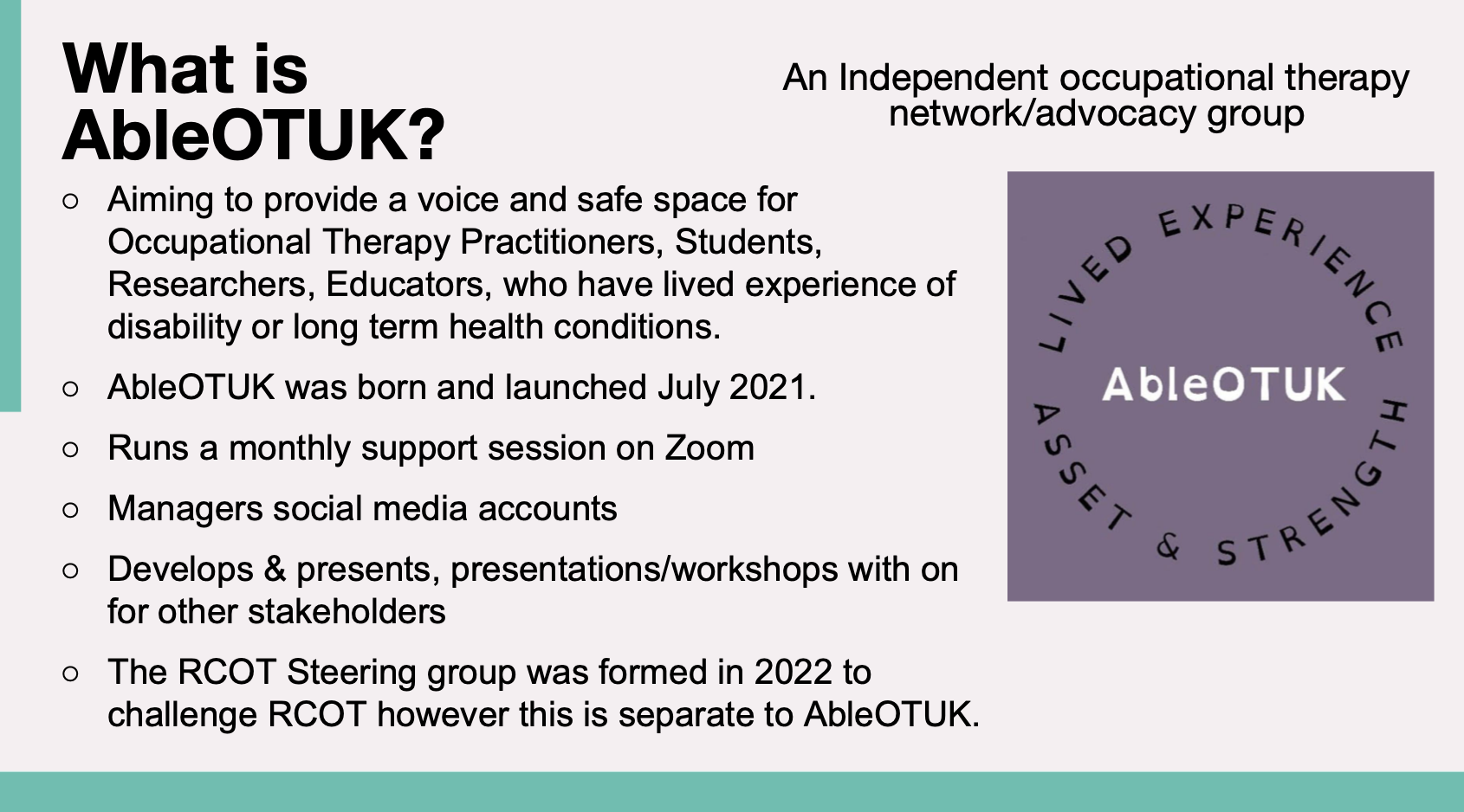 Thoughout July 2022 we ran a Be an AbleOTUK ally twitter campaign. #BeAnAbleOTUKAlly
