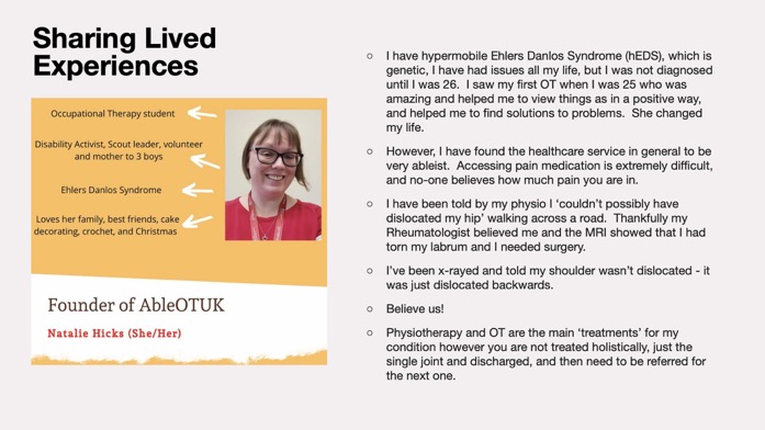 24th November 2023 -The OT Show Creating Spaces for Belonging: Experiences of a disabled newly qualified OT Natalie Hicks, Occupational Therapist and founding member – AbleOTUK