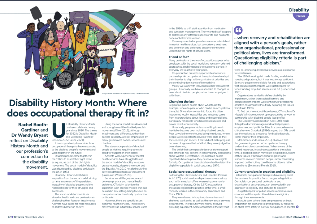 November 2022 OT News Article – Disability History Month: Where does occupational therapy fit in? Page 12-15