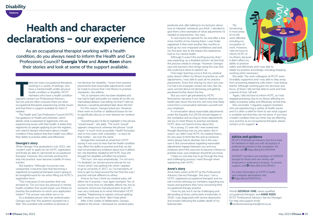 May 2023 OT News Article – Health and Character declarations – our experience Page 54-55