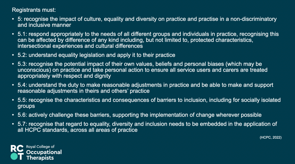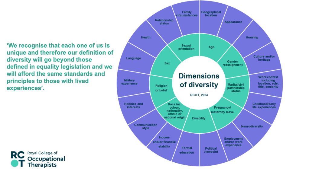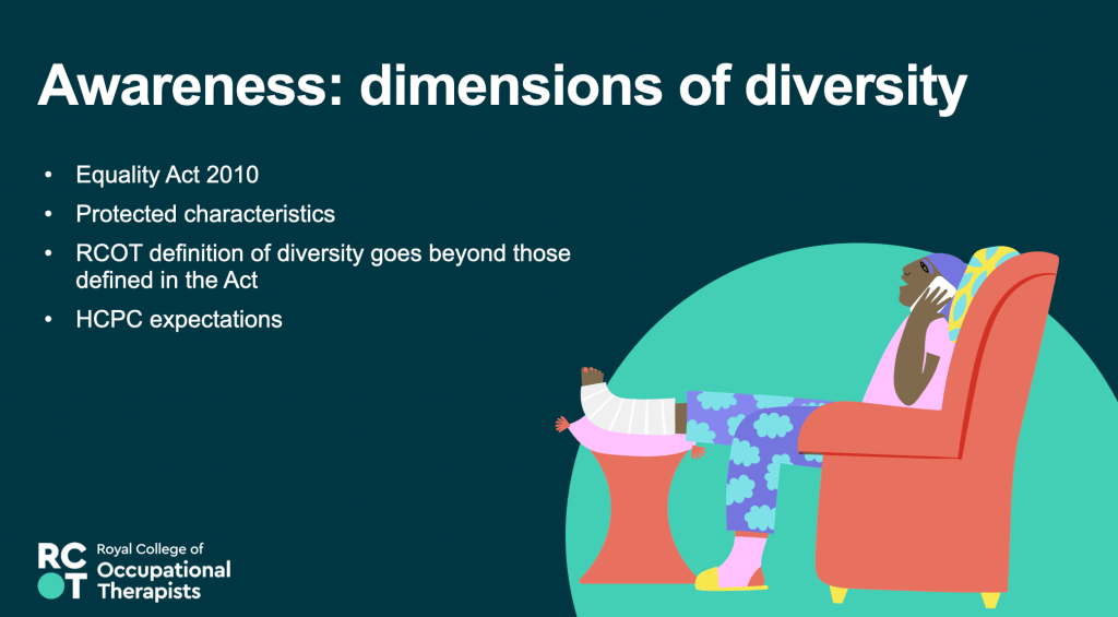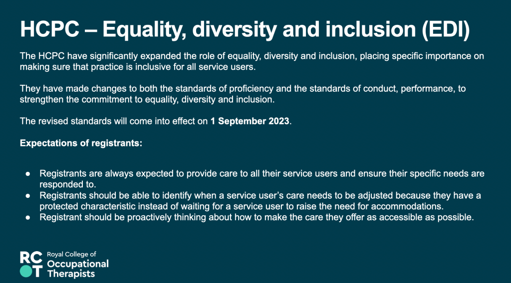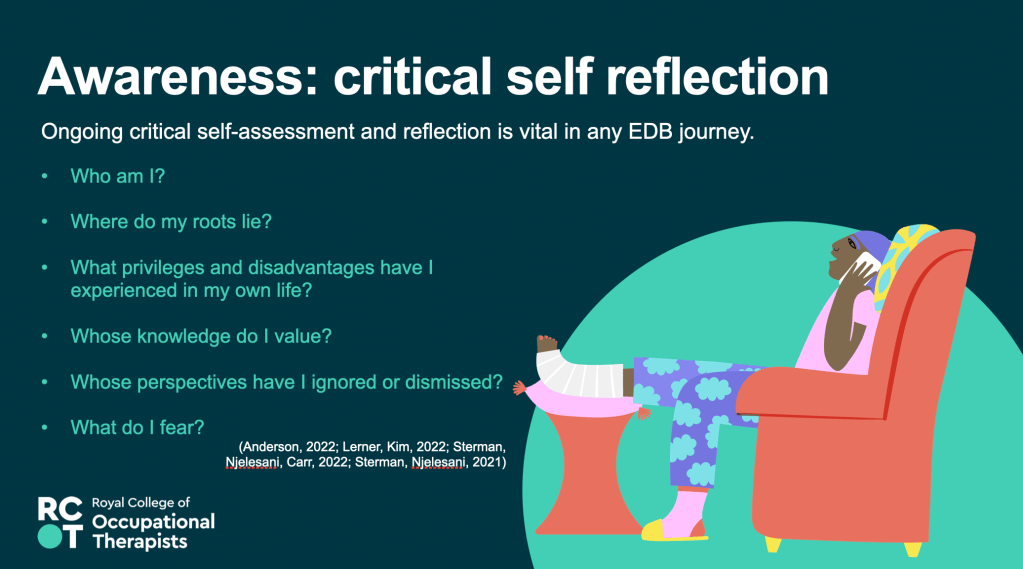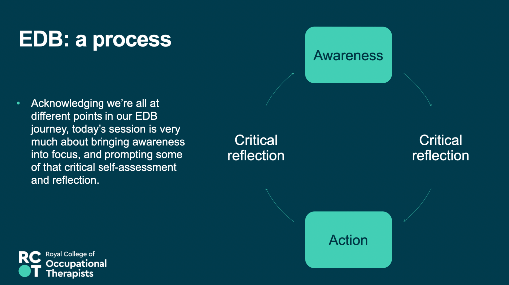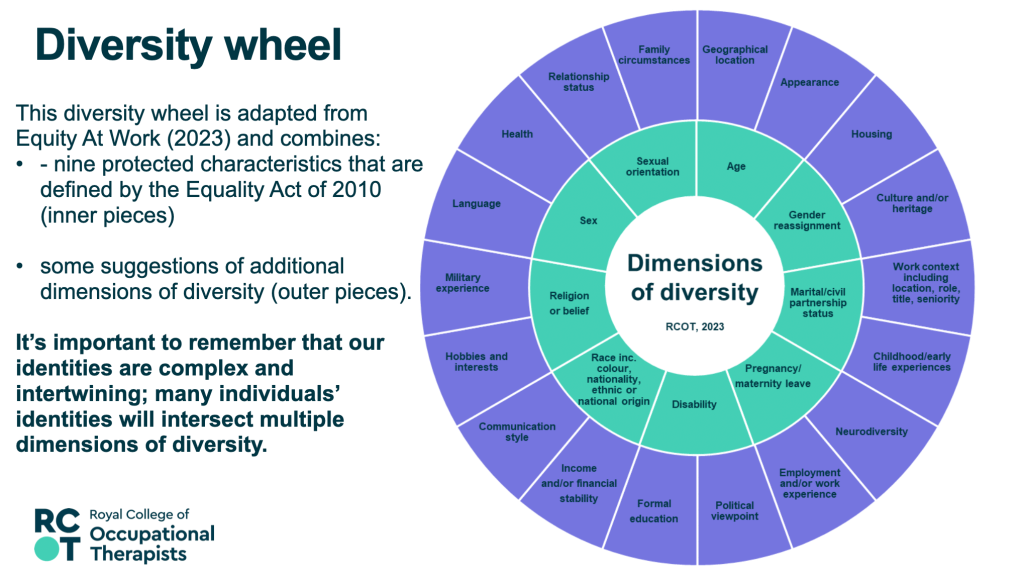 17th May 2023 – Equity, Diversity and Belonging – Awareness, Responsibility, Growth – Presentation at the RCOT Northern and Yorkshire regional come back learning event, join with LGBTQIA+OT and RCOT EDB manager